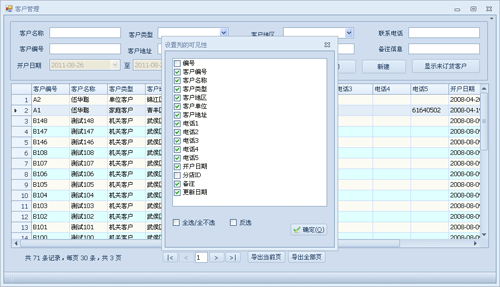 这些初始化设置完成后,一般查询界面都会有一个条件的组合,然后通过组合条件查询数据库记录并显示,显示的时候,分页控件可以设置对应字段的中文显示名称,显示的字段列,显示顺序等。显示字段的顺序就是列表的显示顺序,这个特性也是新版本增加的功能之一。