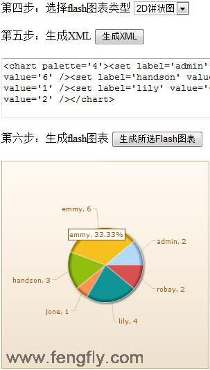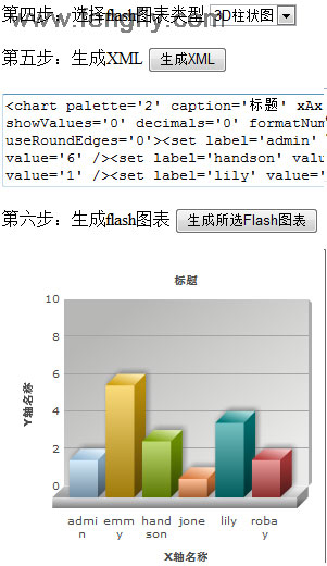 当选择不同的图表类型后,生成的图表样式也不一样(XML的参数很多,可以参考FunsionChart官方的API说明):