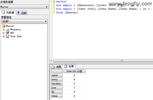 (1)首先,将附件question.rar解压,并将test6.abf文件还原至SSAS中,并测试一下MDX语句是否正确,如下图所示: