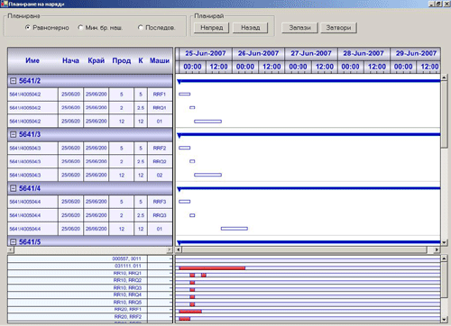 VARCHART XGantt被用于可视化TECHNOCLASS应用程序中多种不同的图表。例如,一个甘特图对机器和它们的工作负载给出了明确的概述,使得计划员能够以机器负载的方式模拟不同的规划策略:最小载荷(机器负载设为最小),最大载荷(机器负载设为最大)和顺序负载(机器按照任务排入顺序加载)。同时,它允许选择不同的调度方向:紧钱(ASAP)或紧后(JIT)调度。