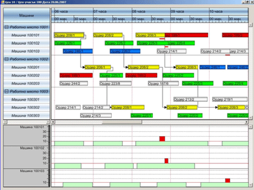 TECHNOCLASS MES中的调度图是另外一个演示VARCHART XGantt在该系统中使用的例子。生产车间接收的订单都显示在一个图表中,可以在该图表中查看它们所分配到的机器或员工。这样,车间经理能够实时的管控生产流程,通过柱状图,轻松、快速地识别工作过载或重叠。