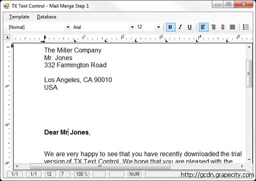 当点击Merge按钮时,数据库中的数据将被拷贝到文档中相应的文本域中。 你还可以通过重复点击Next和Merge按钮来合并不同的数据到文档中。