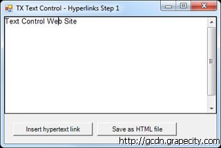在第二个示例程序中,添加了一个对话框,这样就可以更方便的创建超链接。除此之外,还可以对之前插入的超链接进行编辑和修改。需要注意的是,超链接通常是和 HTML文件相关联,不过超链接还可以保存在RTF、微软Word文件以及TX Text Control格式的文件中。
