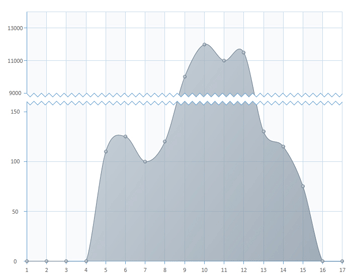 -坐标轴断开(如图所示)。调用CBCGPChartAxis:: EnableScaleBreaks可实现该功能。坐标轴断开可自动生成也可手动添加。