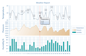 -新增工具提示支持(如图所示)。调用CBCGPChartCtrl:: EanbleTooltip从而实现图表控件的工具提示。你还可以覆盖CBCGPChartSeries:: OnGetDataPointTooltip来为特定的 数据点自定义工具提示文本。