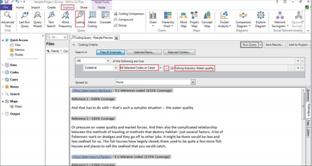 当你对数据中的模式进行编码时,你可能已经在研究杂志上做了笔记。你们可能将从对文本的分析,转向对代码和它们之间关系的分析。在Ribbon中,选择Explore选项卡并单击Coding。