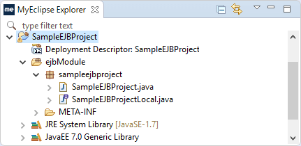 新项目包括默认的ejbModule源文件夹和sampleejbproject包: