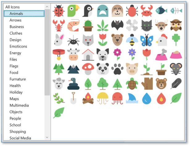 单击左侧面板中的任意类别,或选择“All Icons”滚动浏览所有类别。 单击要选择的图标,将其添加到“Thought”中,然后关闭“Thought Properties”对话框。