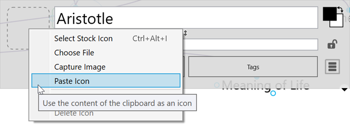 复制图像后,从“Thought Properties”对话框中,单击“Thought”图标框,或右键单击Plex中的“Thought”,然后选择“Paste Icon”命令。