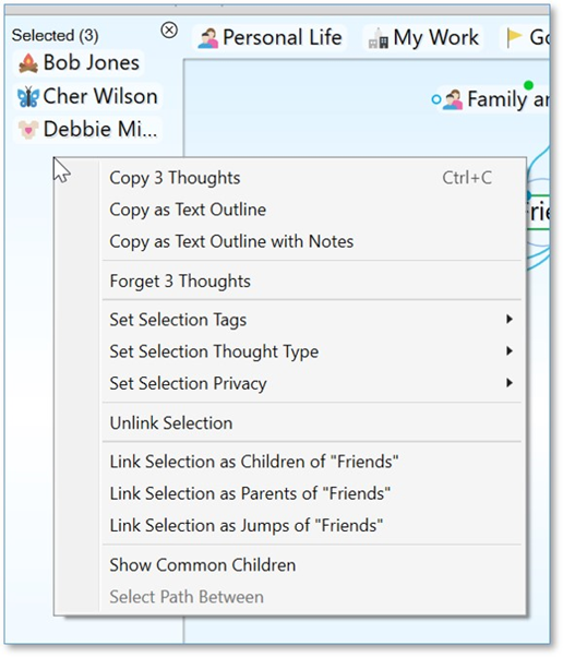 然后将选定的思想添加到TheBrain的Selection框中,以便一次对大量的想法进行编辑。