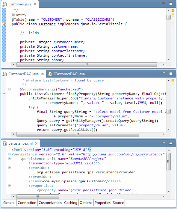 MyEclipse Java Persistence透视图为面向jpa的任务提供了最佳的编辑器和视图布局。
