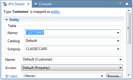 逆向工程过程是完全可定制的。使用JPA逆向工程向导,可以选择要生成的工件以及该工件所基于的数据库表。