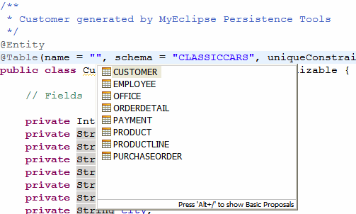 JPA Annotation Table和Column Content Assist