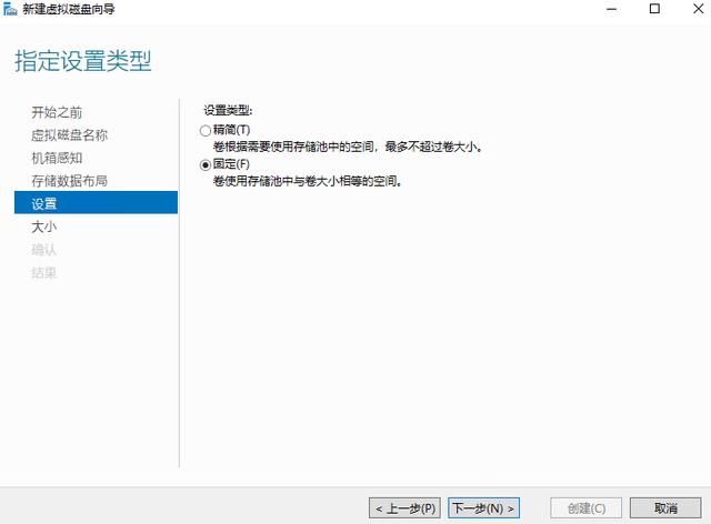 点击下一步。我们先创建一个Mirror类型虚拟磁盘,设置类型选固定: