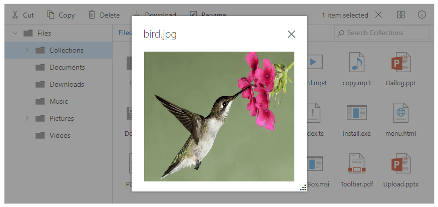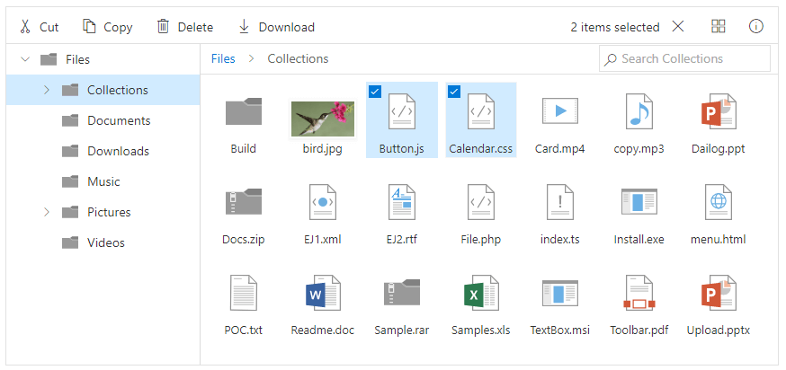 文件管理器控件执行所有常用的文件操作:创建、删除、剪切、复制、粘贴、重命名、上传和下载文件和文件夹。