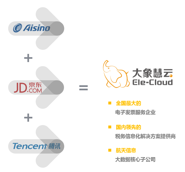 大象慧云于2016年由航天信息股份有限公司及京东集团共同出资成立。2018年3月,腾讯系高朋投资入股,为公司发展带来新的机遇。