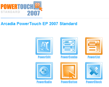 Arcadia PowerTouch EP 2007 Standard 包括 PowerButton,PowerCheck ,PowerCombo,PowerEdit,PowerList ,PowerRadio 六种子控件。