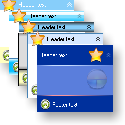 CollapsingGroupPanel CollapsingGroupPanel is a general purpose container control that can collapse vertically or horizontally. CollapsingGroupPanel has a header, body and footer. The header and footer display an image and text. CollapsingGroupPanel can also display a watermark. The header, body and footer are painted with brushes which support a number of different styles. |