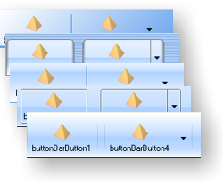 | ButtonBar A bar which contains buttons and separators. The buttons can display dropdown menus and subordinate buttons. ButtonBar supports animated effects and can be rendered in a number of different styles. |