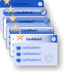 TaskBar A collapsible bar displaying a vertical list of hyperlinks. TaskBar is similar to the Windows XP explorer task bars. TaskBar supports animated effects and can be rendered in a number of different styles. |