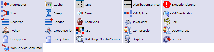 Fiorano Component Gallery helps you to rapidly compose and deploy cross enterprise applications with a large number of prebuilt services. These prebuilt services are generic components that meet some of the common requirements of a Fiorano Service, such as , distributing load between several components, using an EJB object, transferring files using FTP, directing the flow of information, and so on.