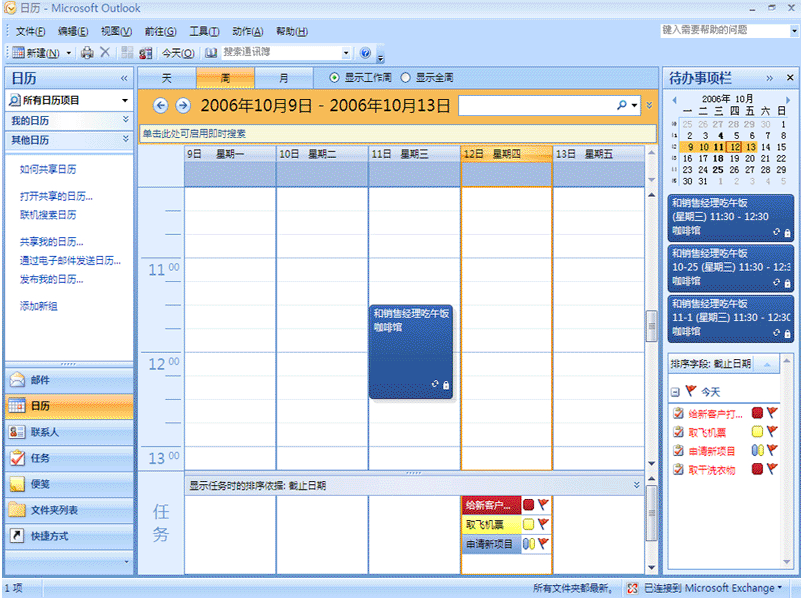 Microsoft Office Outlook 2007 中的计划任务也会显示在日历上。