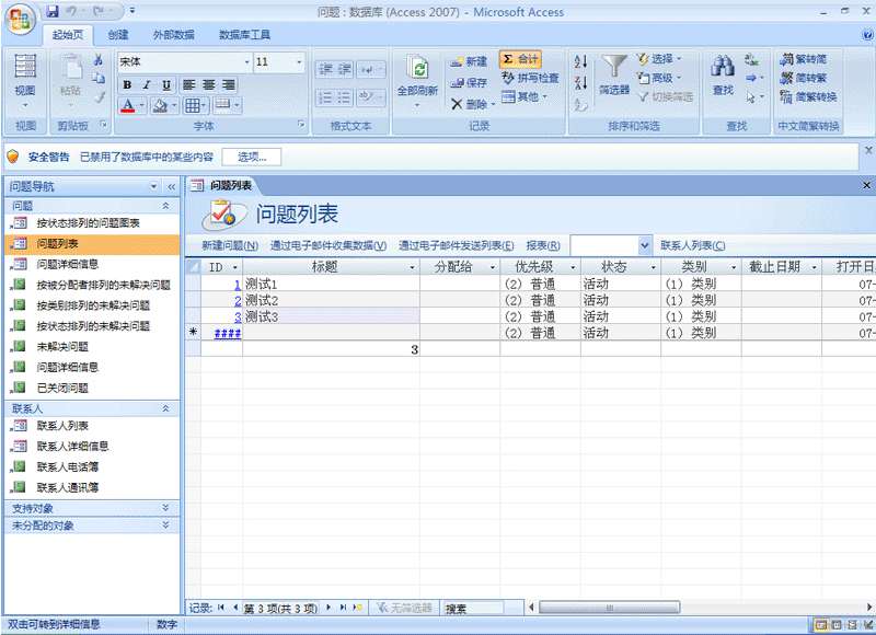 使用 Office Access 2007 跟踪模板,您可以快速创建数据库并生成报表。