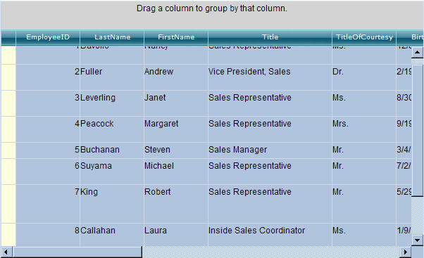 支持数据分层显示,使得数据编辑变得更简便。通过对HierarchicalView属性的设置完成对数据的分层显示。支持对子层数据显示的客户定制,比如隐藏列、改变颜色等,还支持在分层视图和父行视图中进行选择。