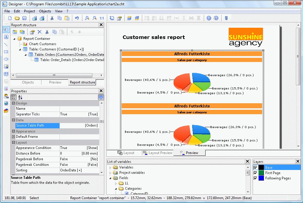 With the report generator List & Label, software developers need only a few lines of code to equip their own applications with reports, forms, lists, diagrams, labels, serial mails, export functionalities etc.